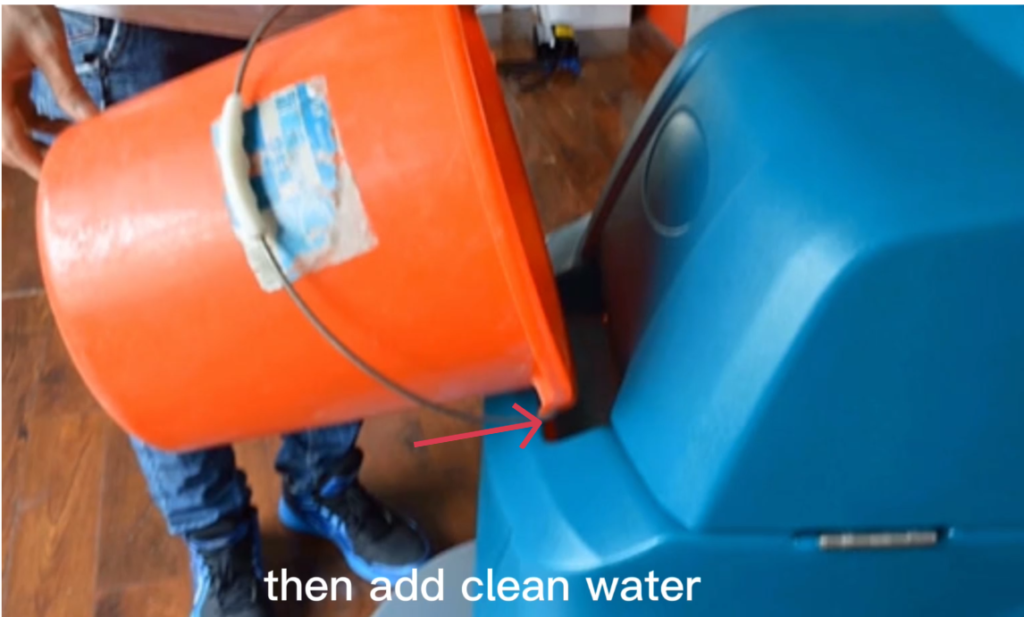 - Add clean water to the solution tank.