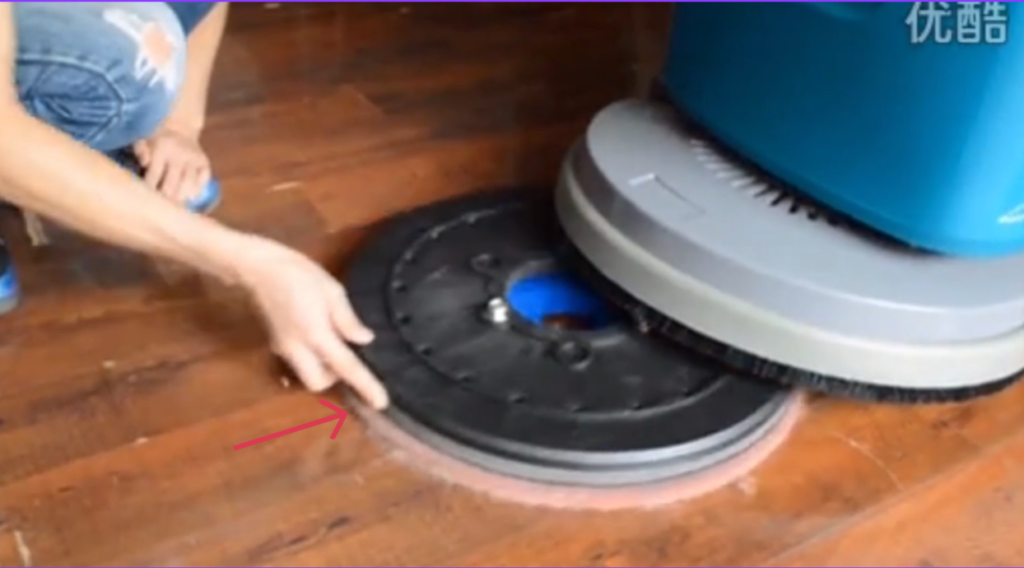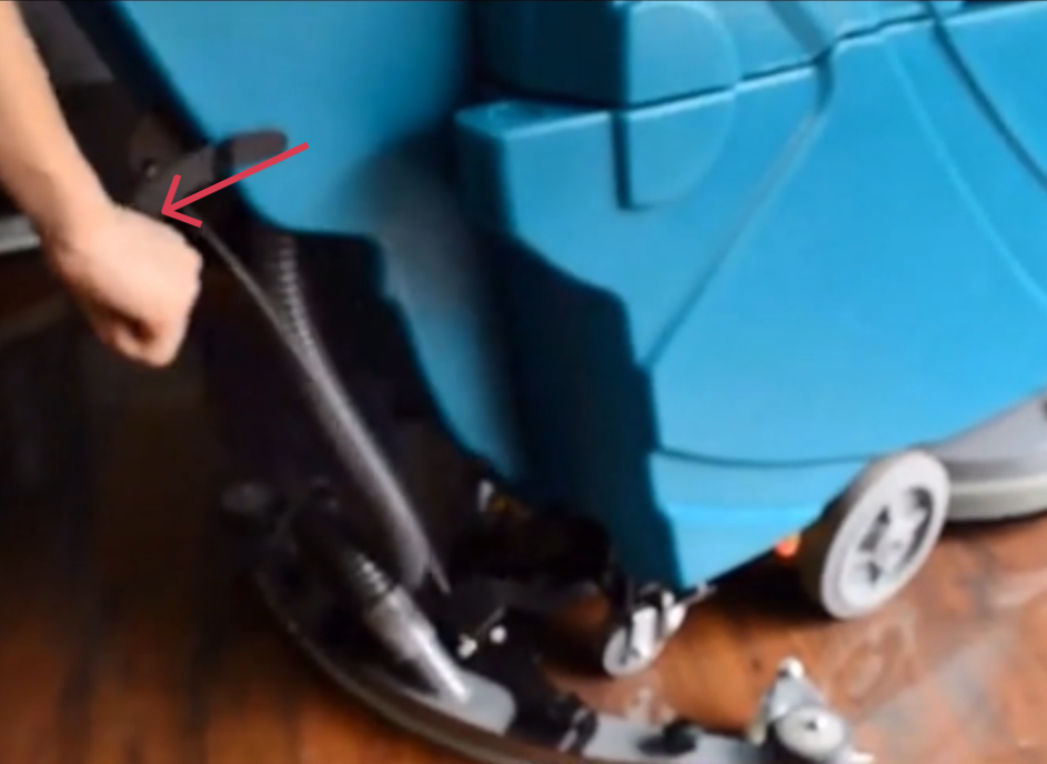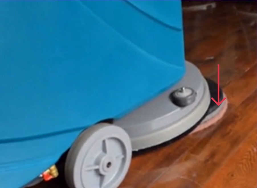 - Place the scrub brush flat on the floor, directly under the brush drive hub.