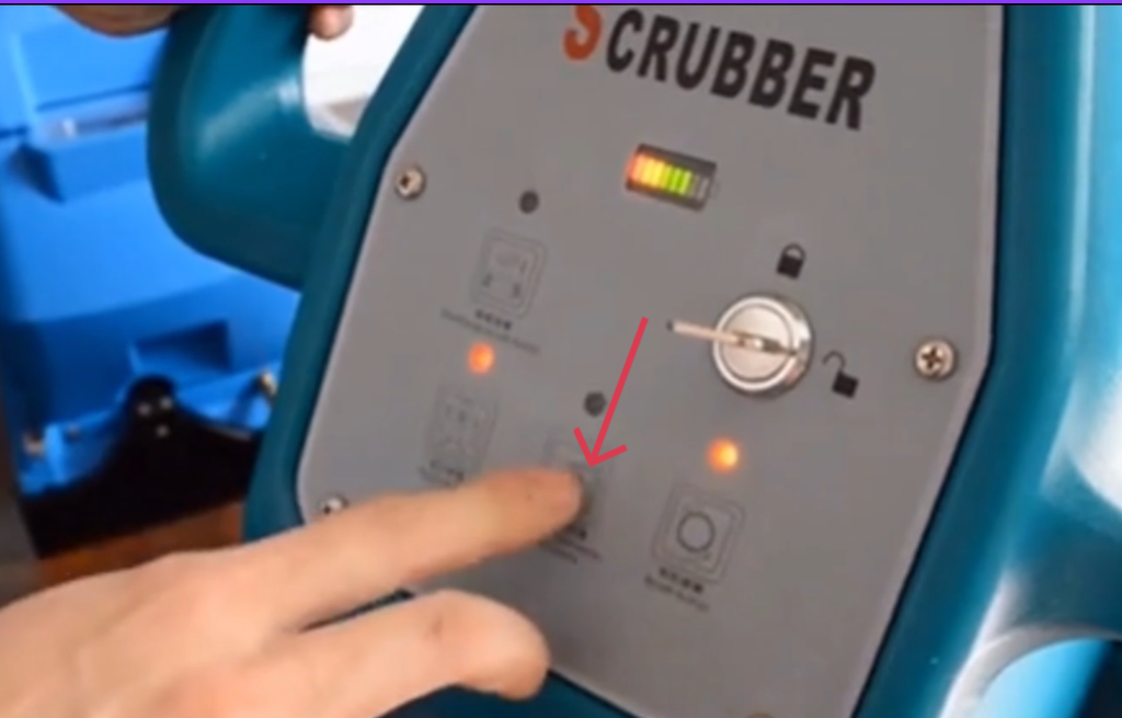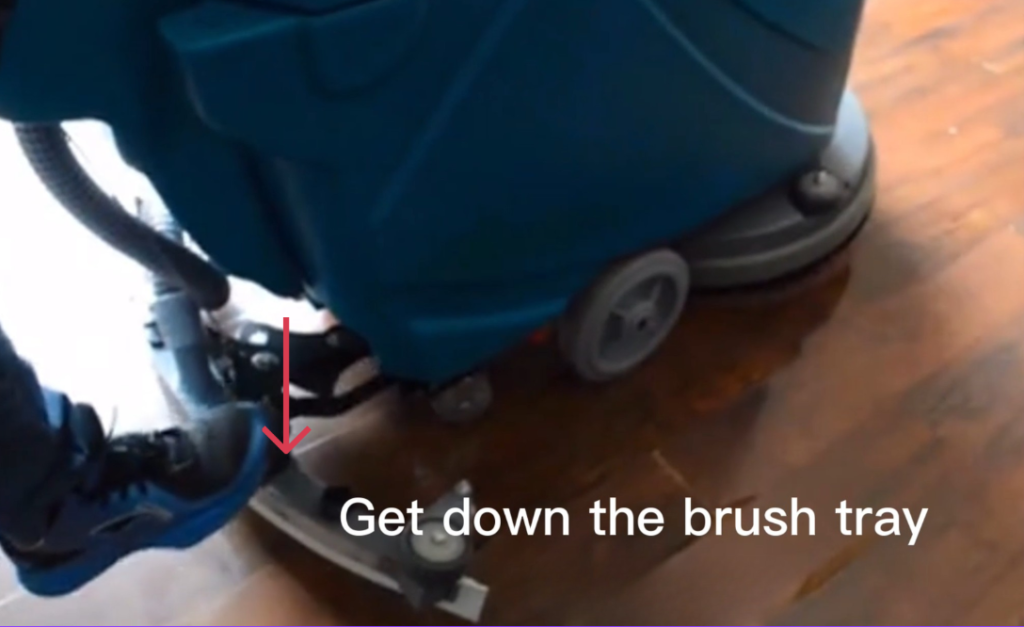 - Lower the scrub deck until the brush touches the floor.